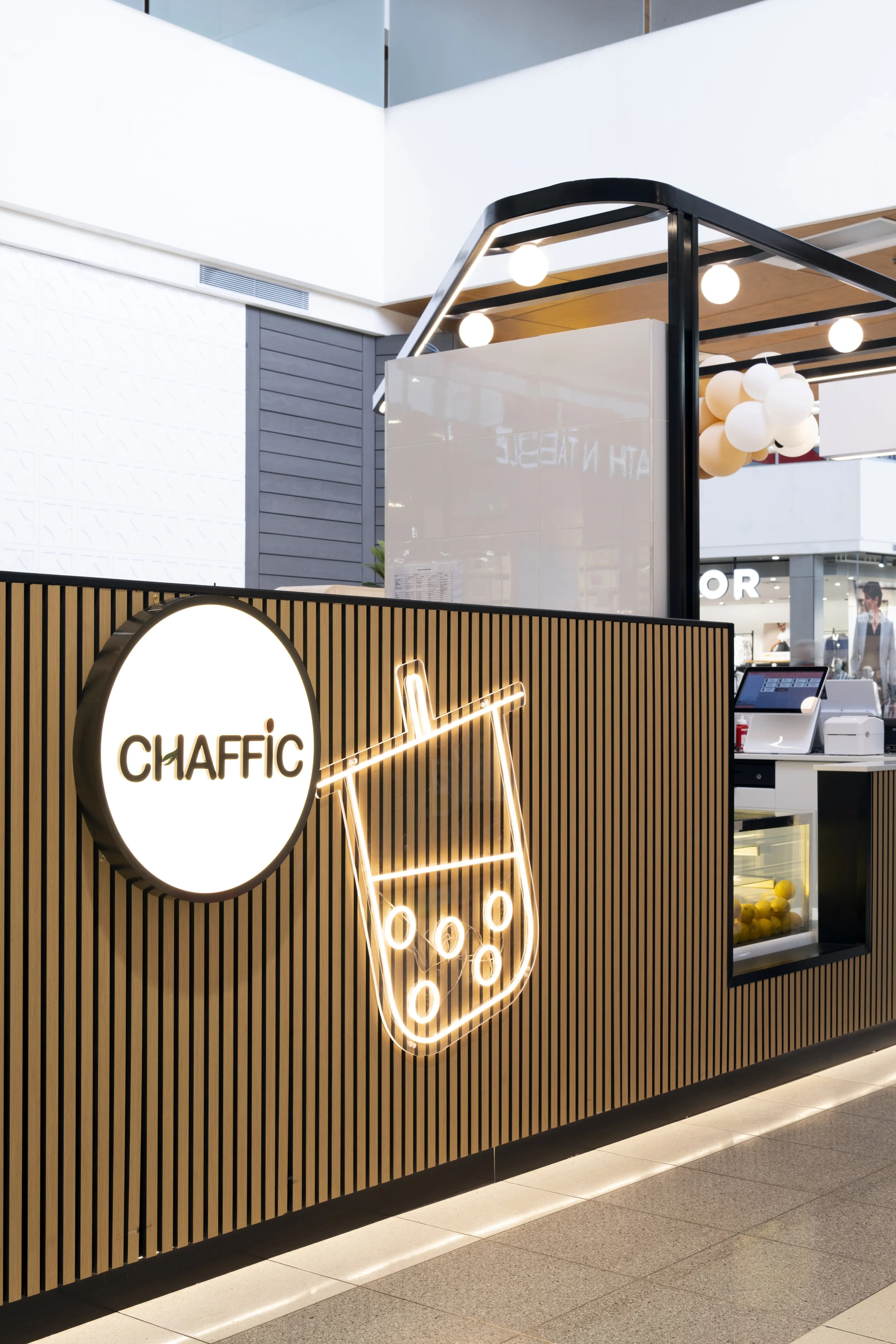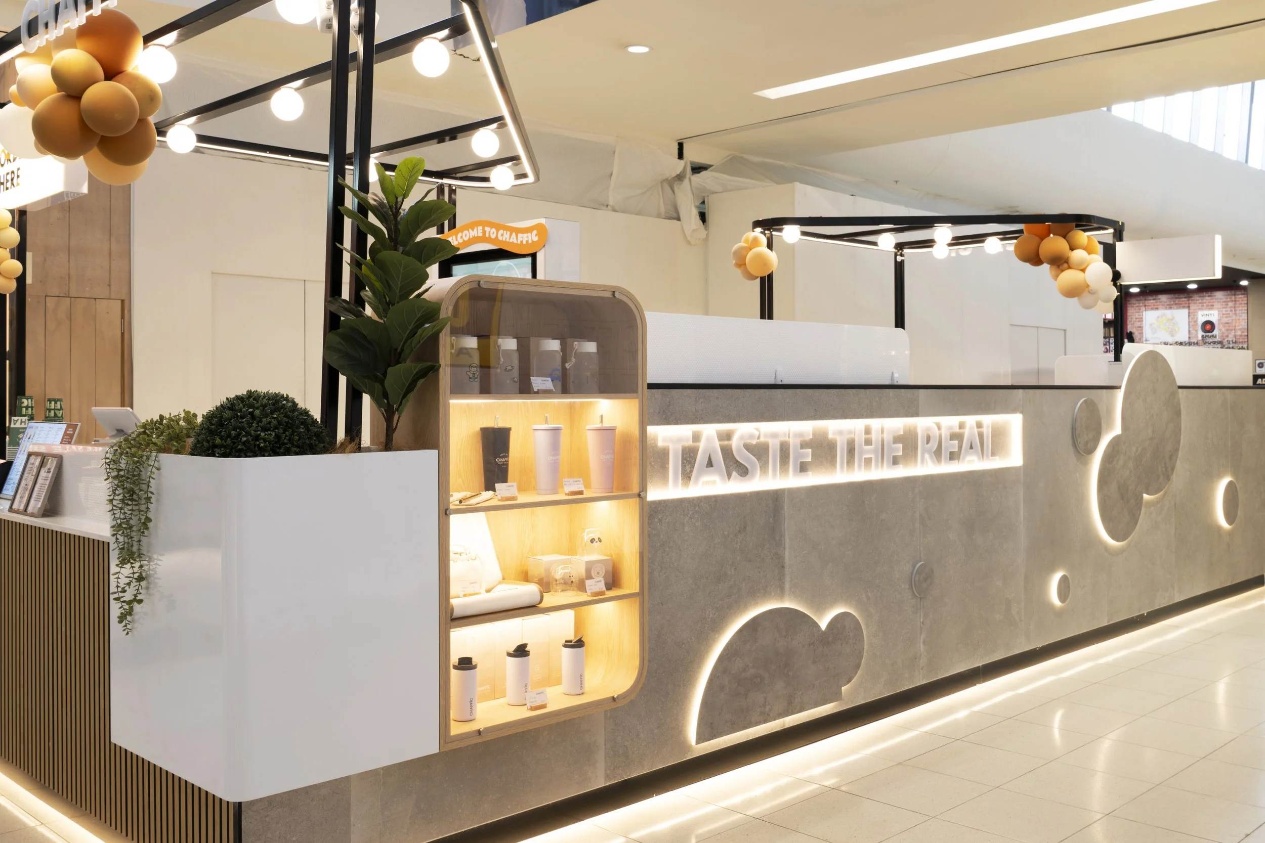 Every element from signage and finishes to lighting and display areas, was curated to enhance the customer experience while maintaining brand consistency. The result is an inviting, energetic bubble tea destination that stands out within the centre, creating a memorable touchpoint for visitors while delivering a fully branded, immersive environment.
