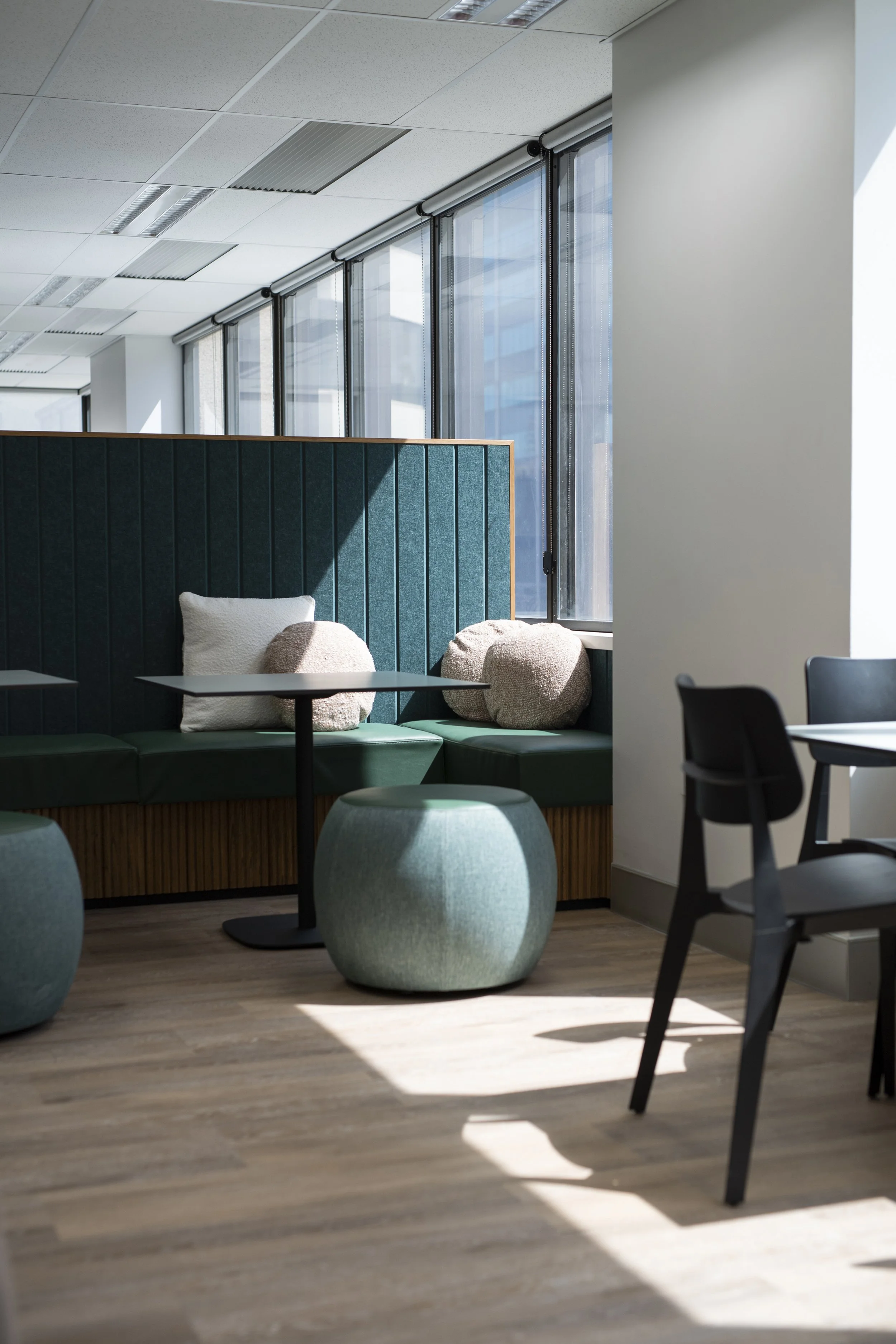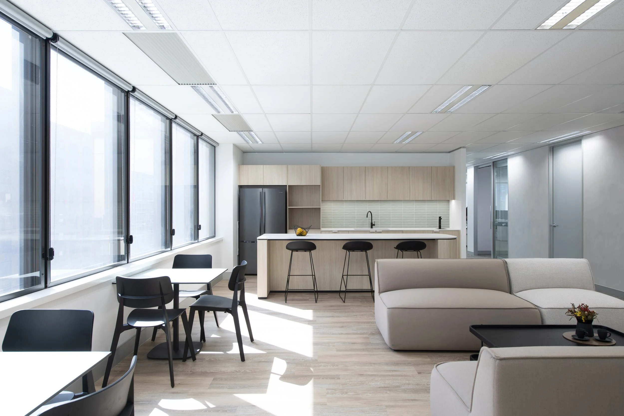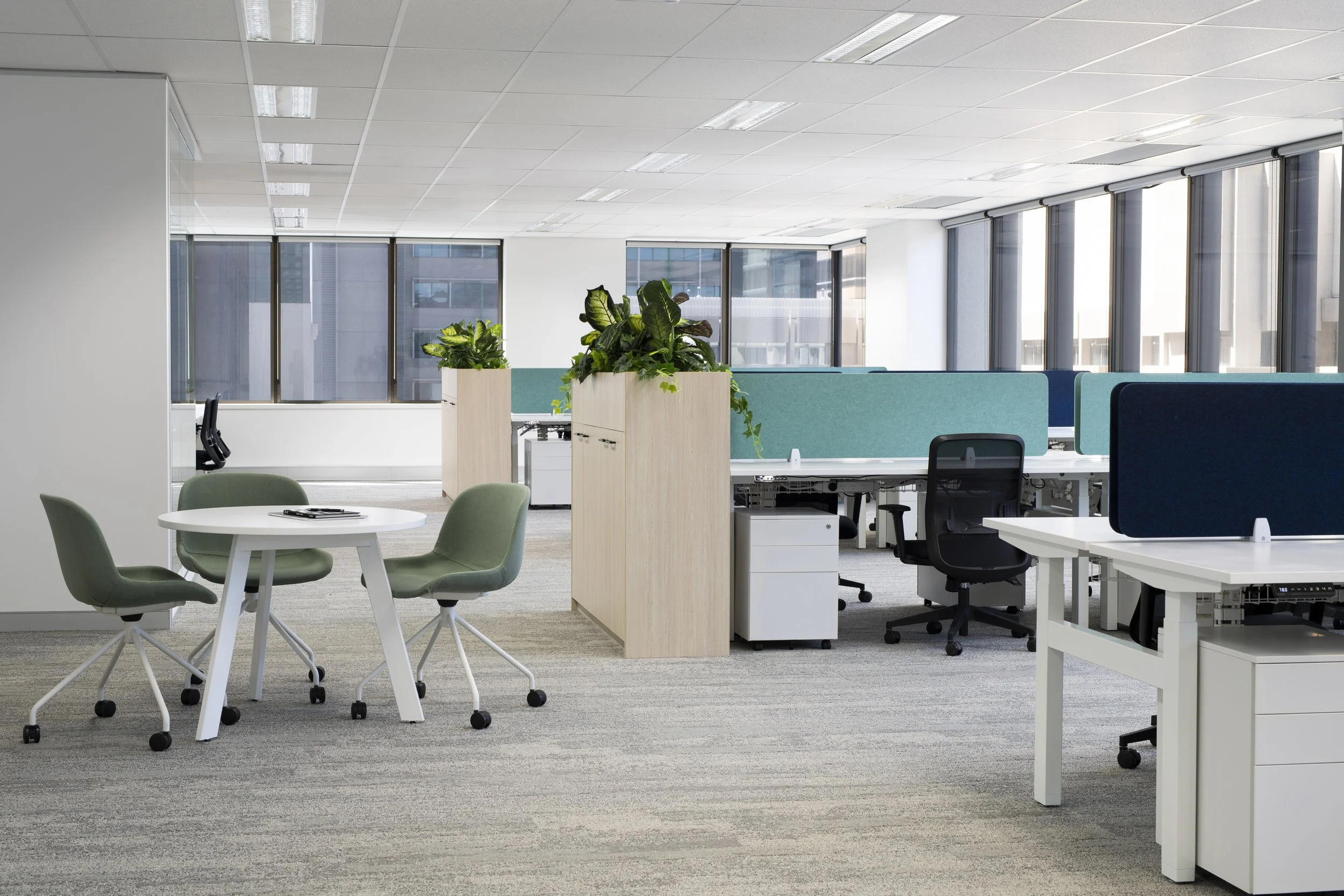 Located in the heart of Perth CBD, this full-floor fitout delivers a refined and highly functional workplace environment designed to support modern ways of working. The interior embraces a neutral base palette, elevated by subtle blue and green tones that draw inspiration from nature’s most prominent surroundings — sky, water, and landscape, creating a calm, balanced, and inviting atmosphere.