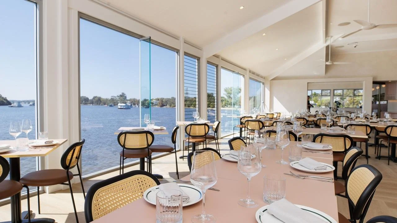 The team behind Noosa’s beloved Sum Yung Guys engaged us to deliver their European-inspired waterfront destination, designed to host both casual dining and unforgettable wedding celebrations. Positioned along the prime Noosa Marina frontage, the venue maximises sweeping water views, evoking the relaxed charm of the Mediterranean. A thoughtfully curated palette of sophisticated materials and warm, sunlit tones establishes a serene and welcoming atmosphere, while layers of natural stone introduce texture and a timeless sense of elegance.