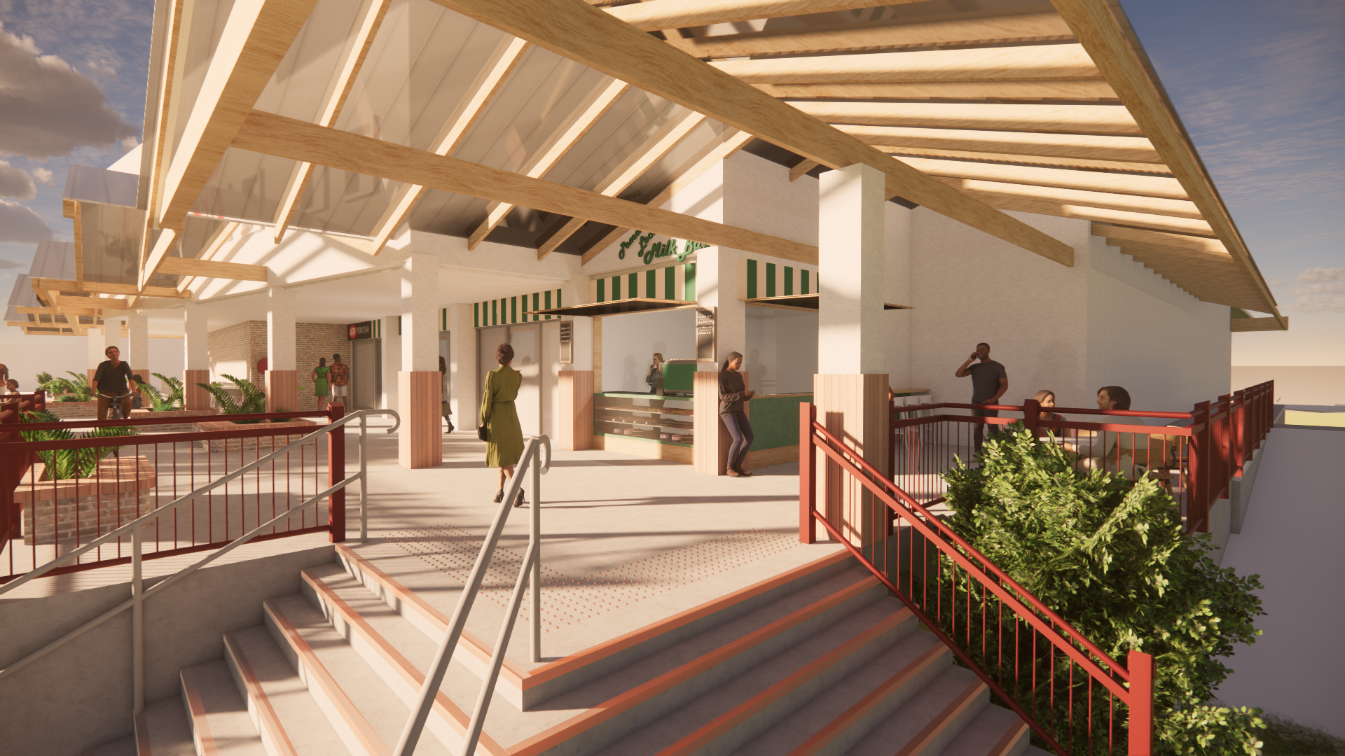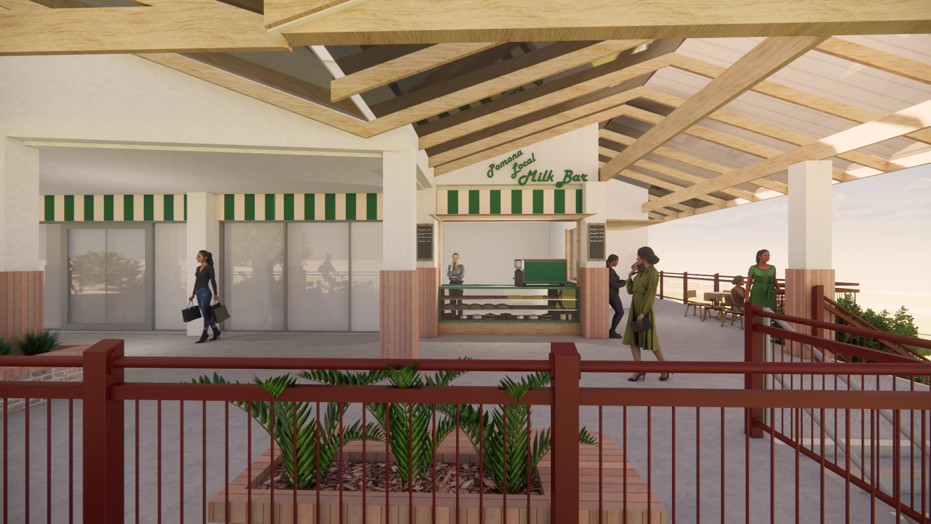 Beyond the retail footprint, the extension thoughtfully considers urban design and public amenity. Planters at the front of the IGA double as casual seating areas, creating welcoming, human-scaled spaces that encourage social interaction and engagement with the street. The result is a proposal that balances modern retail needs with a sensitive approach to heritage, character, and community-focused design.